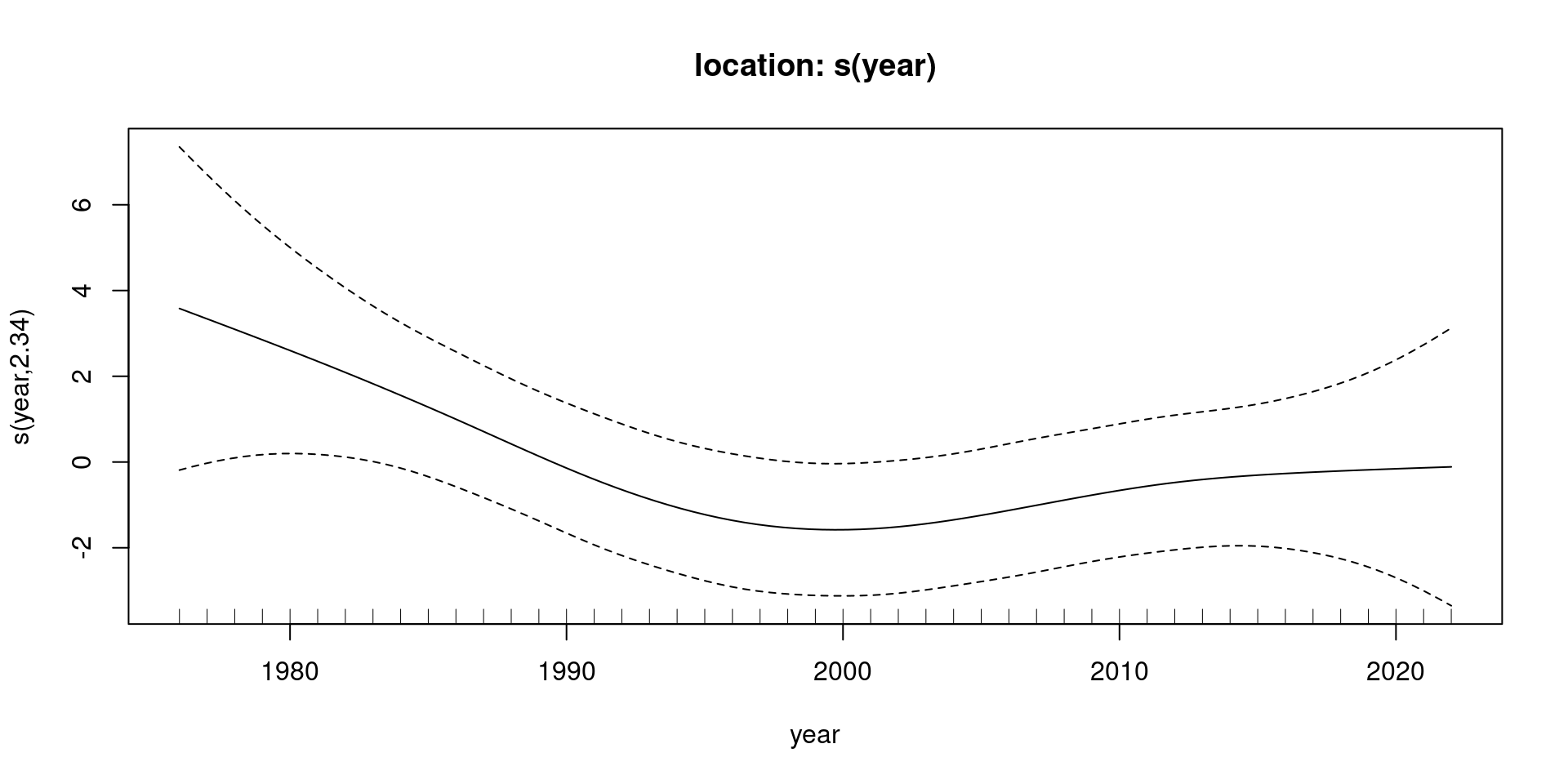 k controls the number of breakpointsbs controls the basis function, e.g., thin-plate splines (tp), cubic regression splines (cr), cyclic cubic spline (cc).fx: control whether fixed degrees of freedom for regression spline or else penalized regression spline (default, FALSE)evgamevgam output