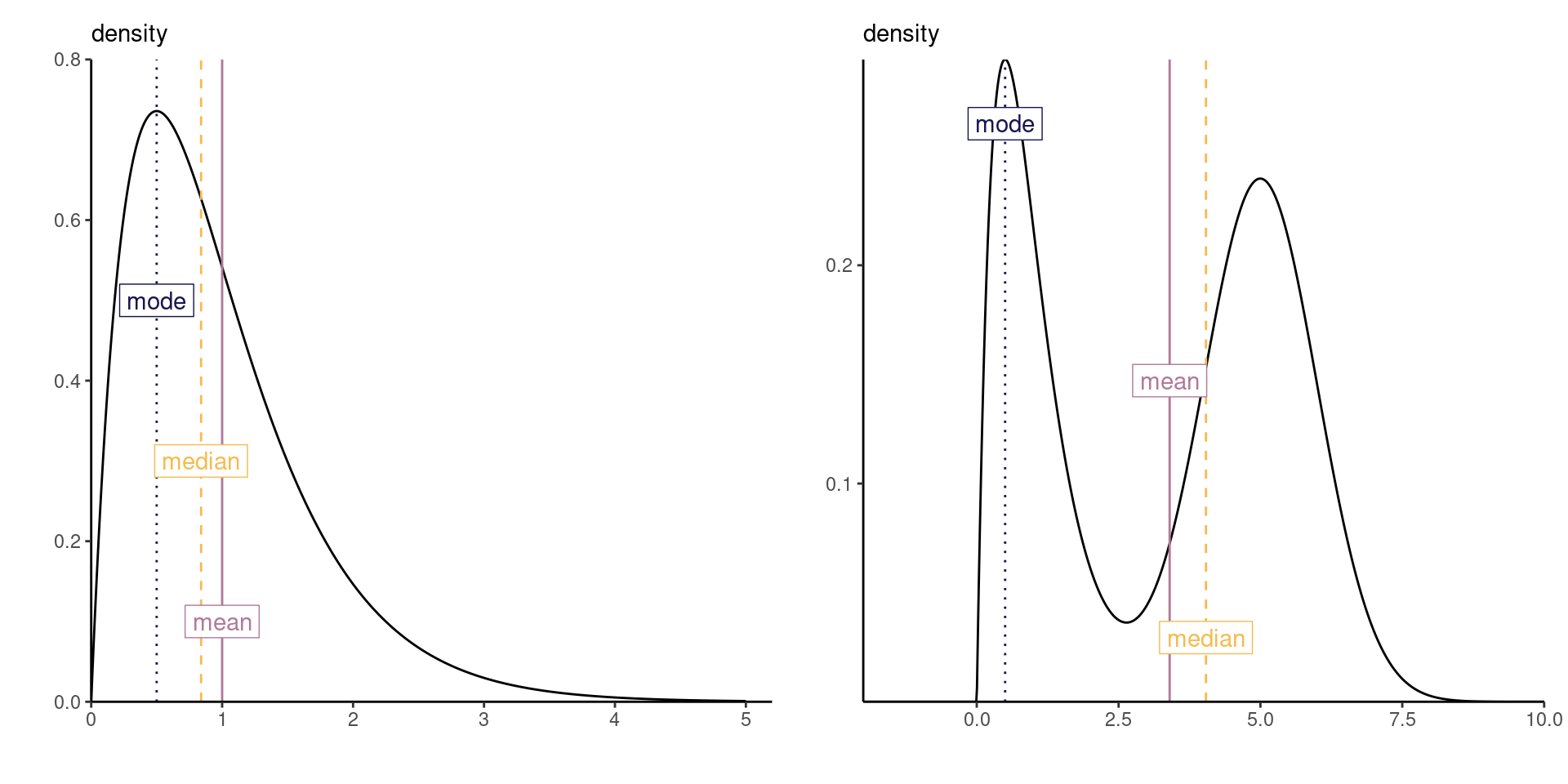 Figure 6: Point estimators from a right-skewed distribution (left) and from a multimodal distribution (right).