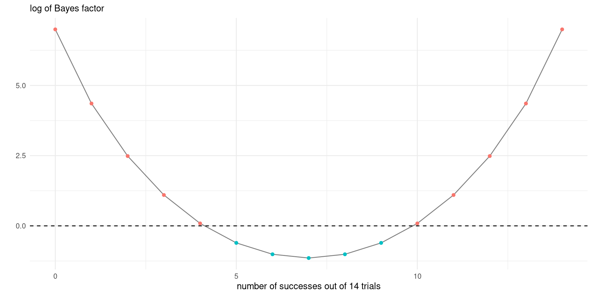 \end{align*}\] Values of \(\mathsf{BF}_{ij}>1\) correspond to model \(\mathcal{M}_i\) being more likely than \(\mathcal{M}_j\).