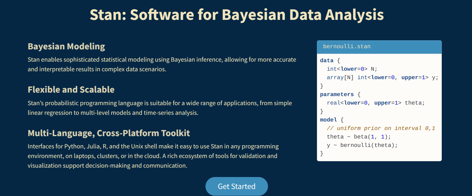 The programming language Stan is written in C++ and offers cross-platform interfaces.