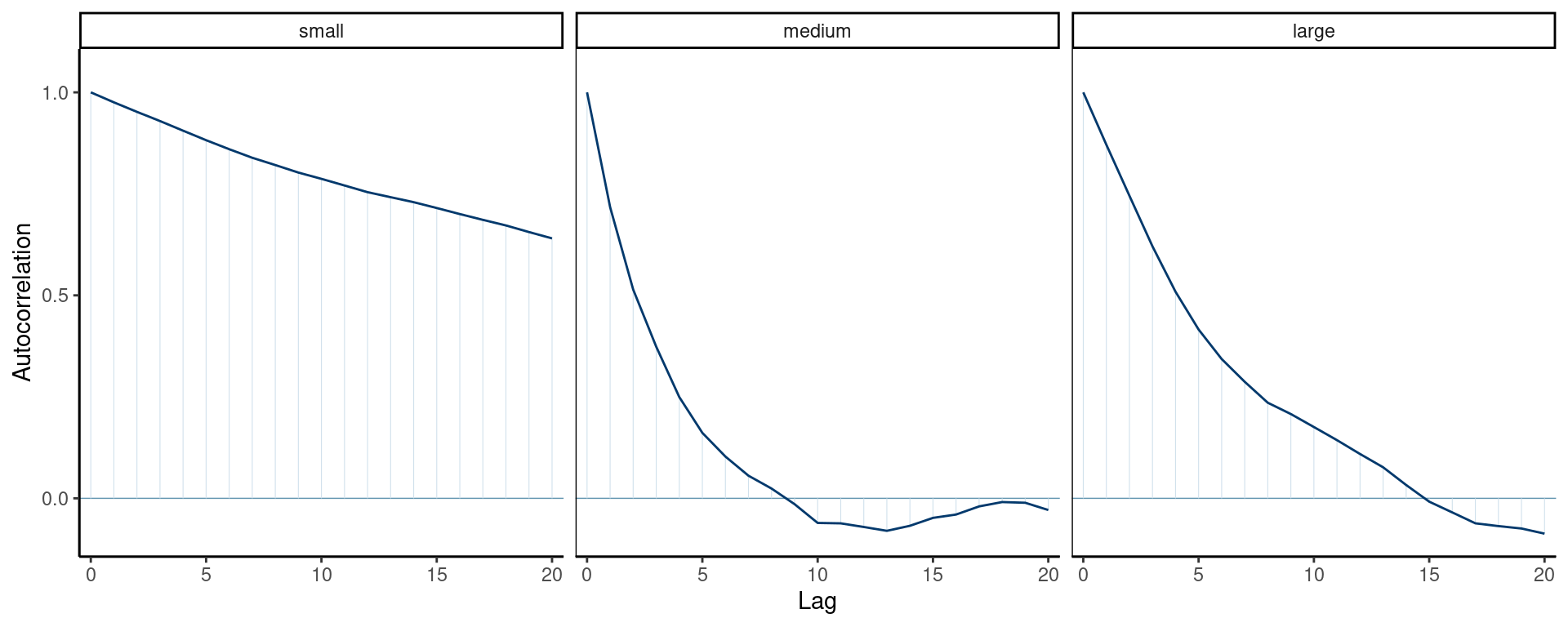 Figure 2: Correlogram for the three Markov chains.