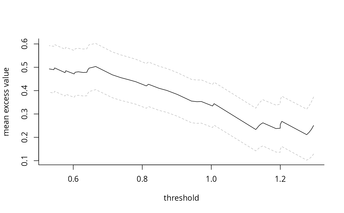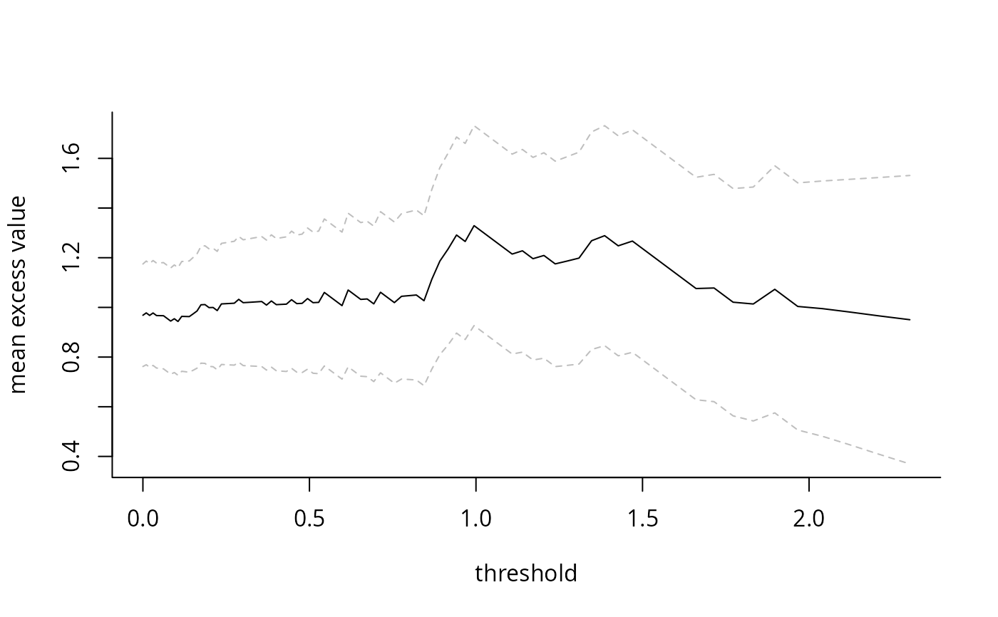 an invisible list with mean sample exceedances and standard deviation, number of exceedances, threshold