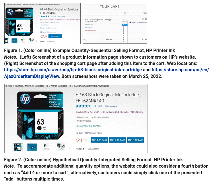 Les clients doivent souvent décider de la quantité à acheter. La présente étude présente et compare le format de vente quantitatif-séquentiel, dans lequel les acheteurs prennent séparément les décisions d’achat et de quantité, avec le format de vente quantitatif-intégré, dans lequel les acheteurs prennent simultanément la décision d’acheter ou non et la quantité à acheter. Bien que les détaillants utilisent souvent le format séquentiel, nous démontrons que le format intégré peut augmenter les ventes.
